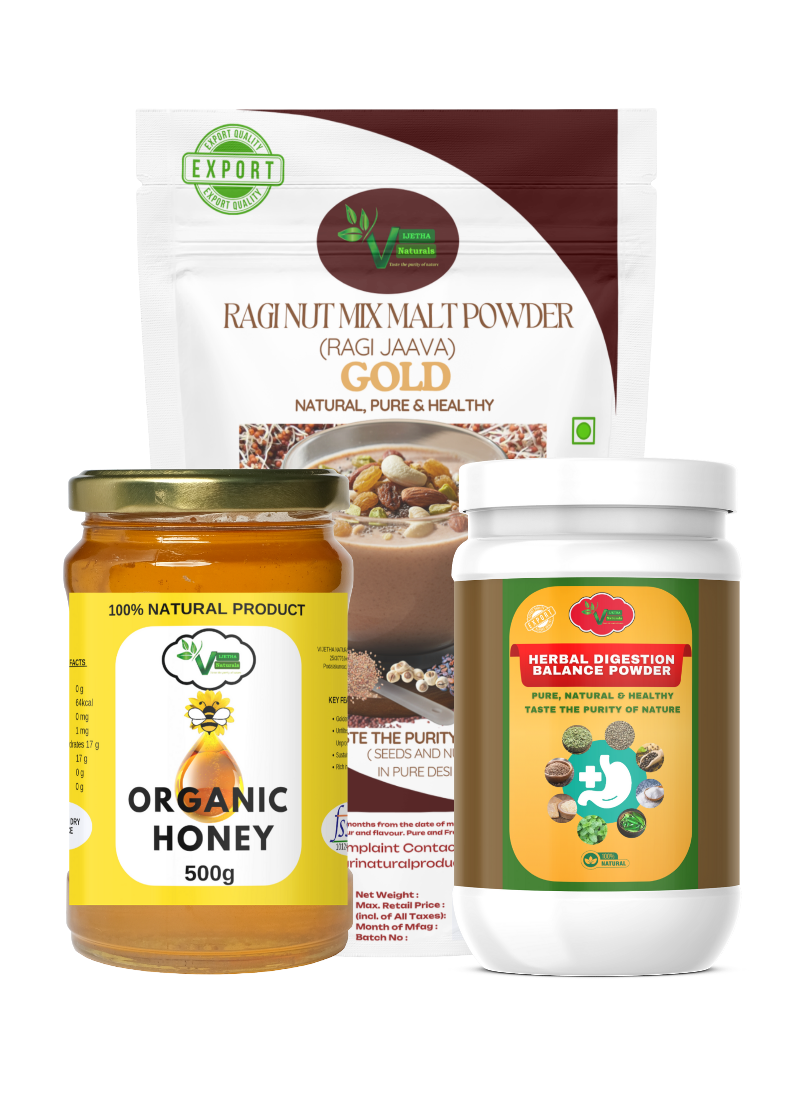 Combo ( Herbal Digestion Balance Powder 250g + Organic Honey 500g + Ragi Nut Mix Malt Powder 500g )