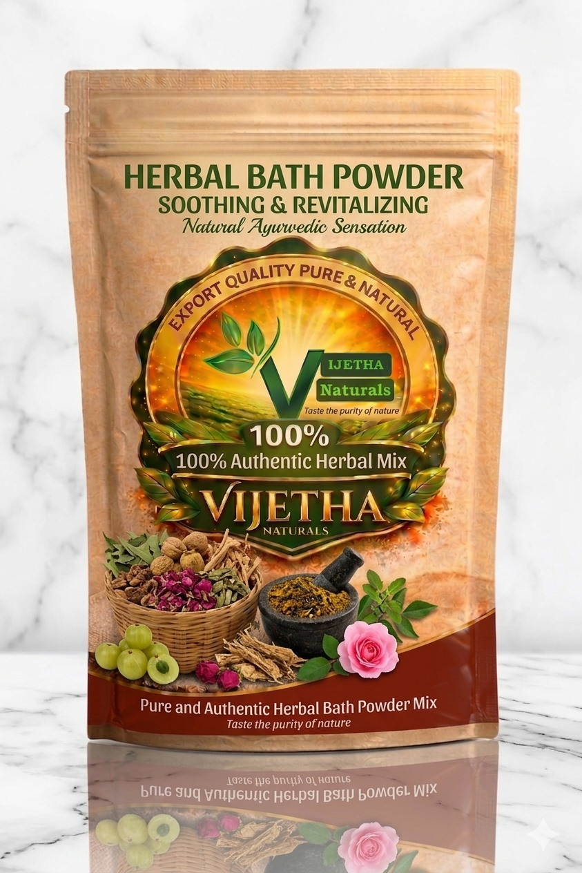 Take required quantity of herbal bath powder, mix with water or rose water to make a paste. Apply gently on wet skin, massage lightly, and rinse off.