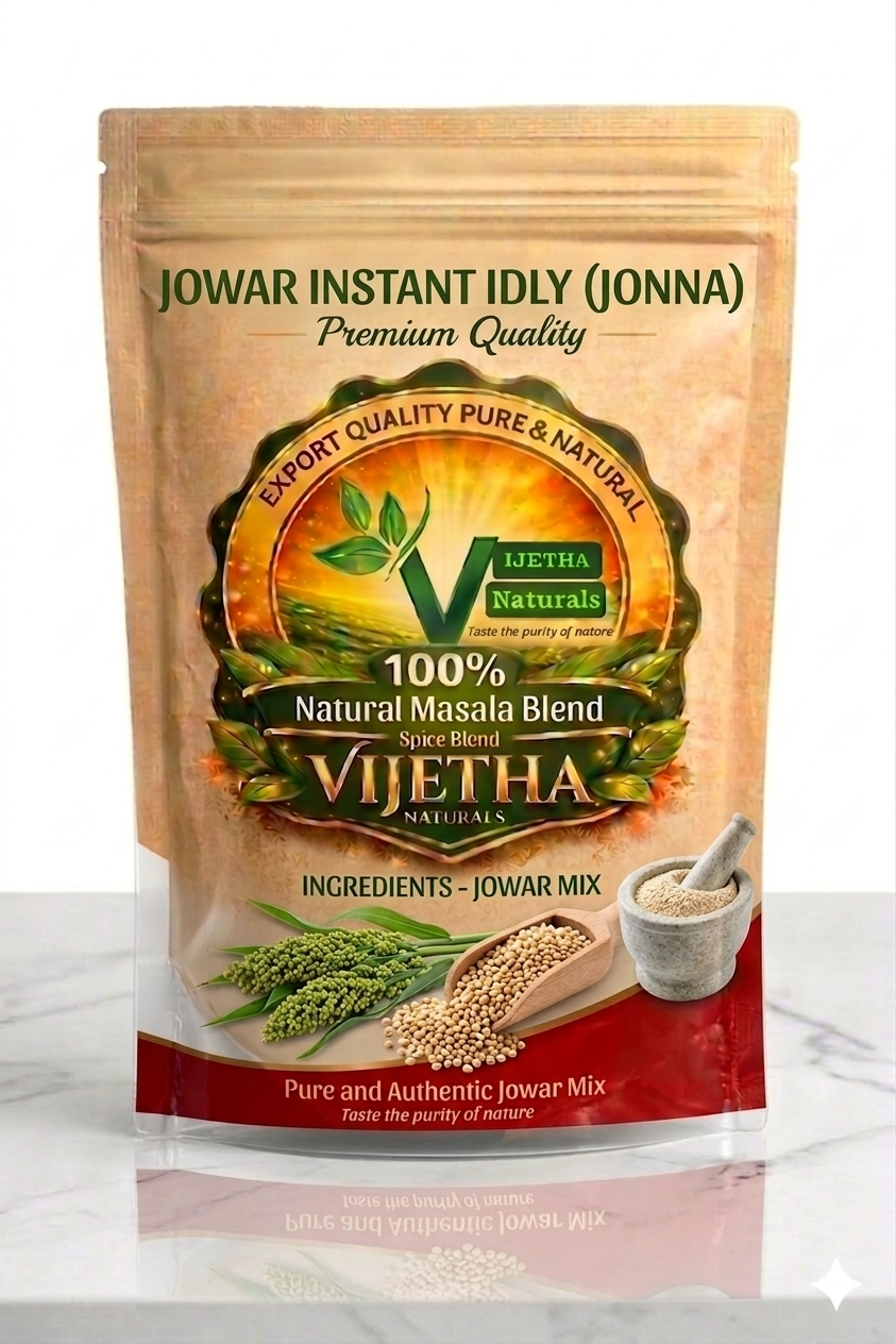 Our Jowar Instant Idly Mix is a healthy alternative to regular idly batter, crafted for those who prefer nutritious and natural foods. Prepared using carefully selected jowar and traditional ingredients, this mix helps you make soft, fluffy idlies quickly without compromising on health. Jowar is known for being rich in dietary fiber, supporting digestion, weight management, and sustained energy. This mix is completely free from preservatives, artificial flavors, and chemicals, making it suitable for all age groups. Simple to prepare and gentle on the stomach, it is ideal for daily breakfast or light meals. Enjoy traditional taste with modern convenience — naturally.