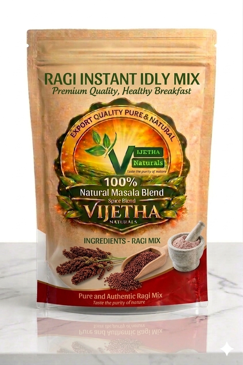 Our Ragi Instant Idly Mix is made from 100% natural ingredients, carefully selected to give you soft, fluffy, and healthy idlies in minutes. Prepared using premium-quality ragi (finger millet), this mix is rich in calcium, iron, and dietary fiber, making it an ideal choice for everyday nutrition. With no preservatives, no artificial colors, and no added chemicals, it supports better digestion, sustained energy, and overall wellness. Perfect for busy mornings and health-conscious families, this instant mix combines traditional taste with modern convenience. Just add water, steam, and enjoy wholesome ragi idlies that are nutritious, tasty, and easy to prepare.